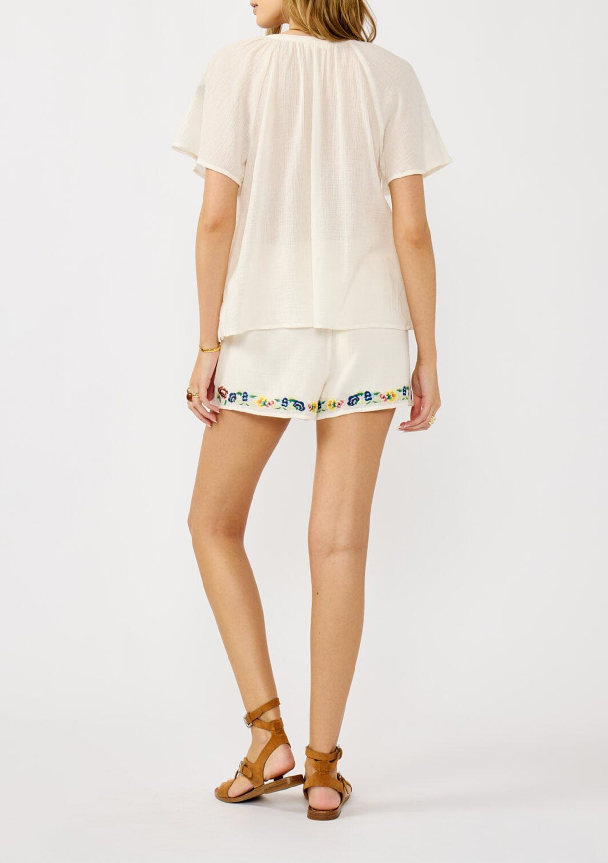 Breezy days and beachside hangouts just got better. These ultra-relaxed cotton gauze shorts are your go-to for easygoing boho vibes, complete with delicate floral embroidery and a smocked drawstring waist for a comfy, flattering fit. Designed with side pockets and a breathable feel, they’re made for laidback lounging or coastal adventures. Style them with our drift top for the perfect warm-weather pairing.