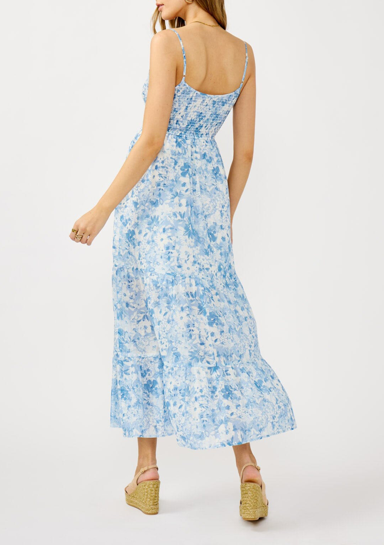 Light as air and effortlessly elegant, this smocked bust maxi dress adds timeless charm to your summer wardrobe. Whether you're walking barefoot on the beach or attending a summer wedding, its breezy silhouette and adjustable spaghetti straps keep you cool and comfortable no matter the occasion.