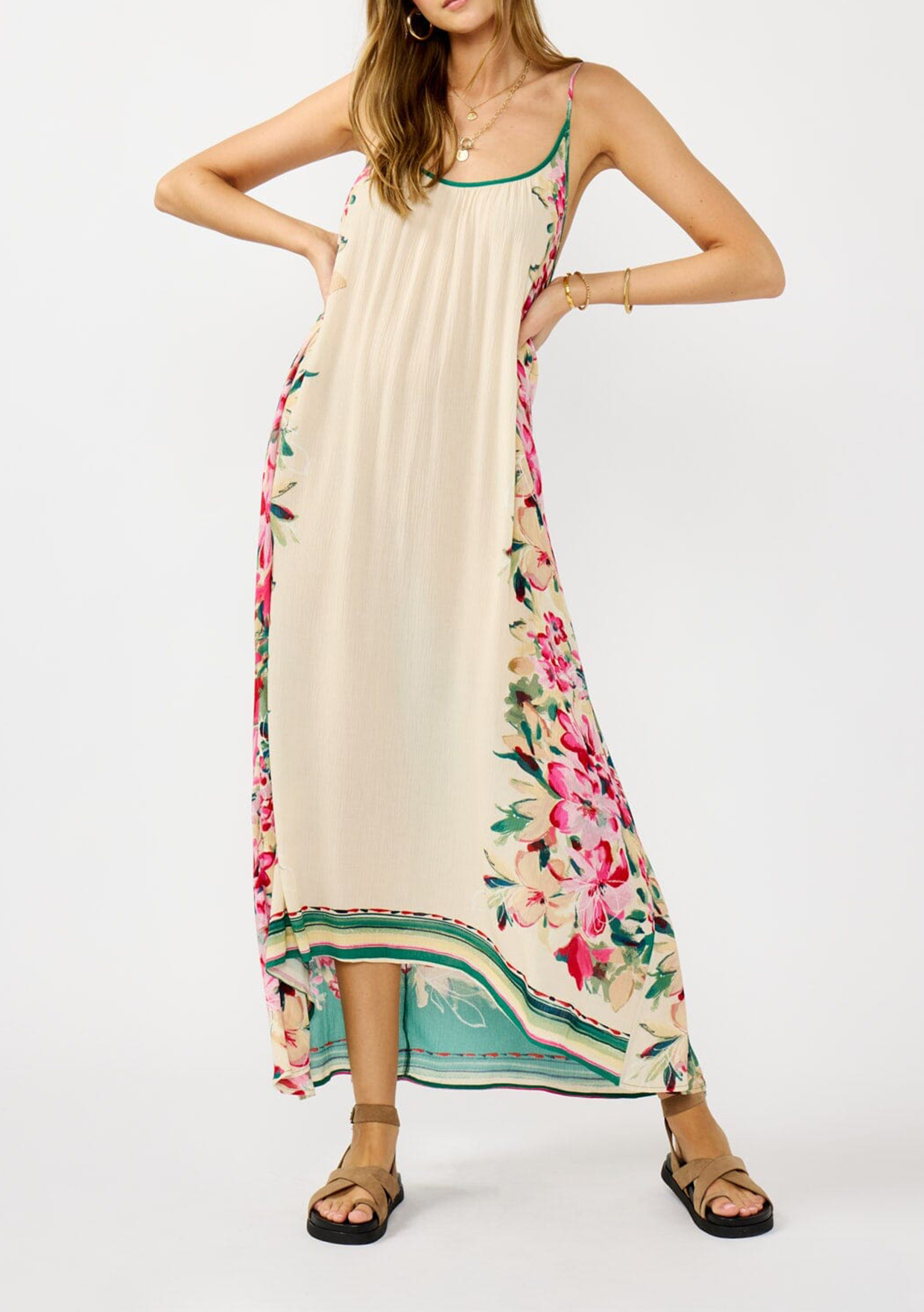 This boho stunner is your new warm-weather go-to. With a dreamy floral print and an easy, flowy silhouette, it brings garden party vibes with a free-spirited twist. Designed with a scoop neckline and adjustable spaghetti straps, it’s effortlessly flattering and made for all-day wear.