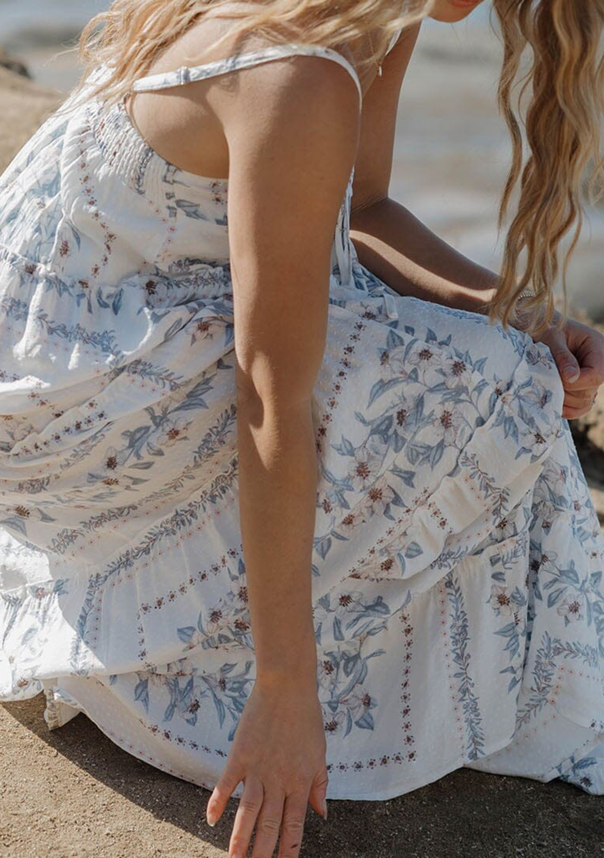 Whether you're celebrating a special occasion or going on vacation, this dress is sure to become your go-to. The sweetheart neckline with an adjustable tie, empire waist, and tiered skirt create a flattering silhouette, while playful ruffled details add a touch of whimsy. Perfect for effortless boho styling.