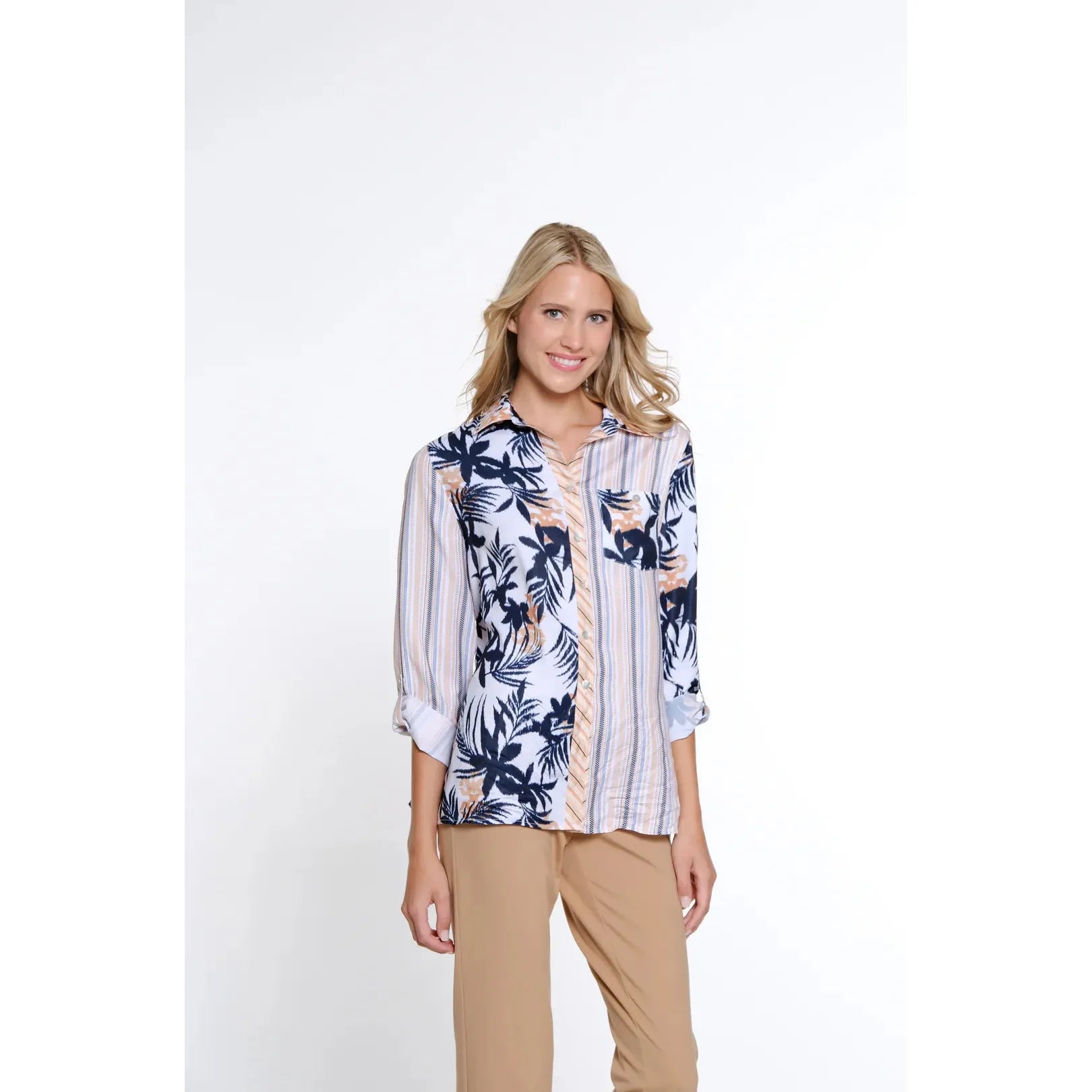 Effortlessly stylish and versatile, this printed woven shirt is designed for both comfort and sophistication. Featuring a button-front closure and a flattering tie waist, it creates a polished yet relaxed silhouette. The roll-tab cuffed long sleeves allow for adjustable styling, making it a perfect transitional piece for any season. Crafted from lightweight polyester, this shirt offers a breathable and smooth feel for all-day wear.