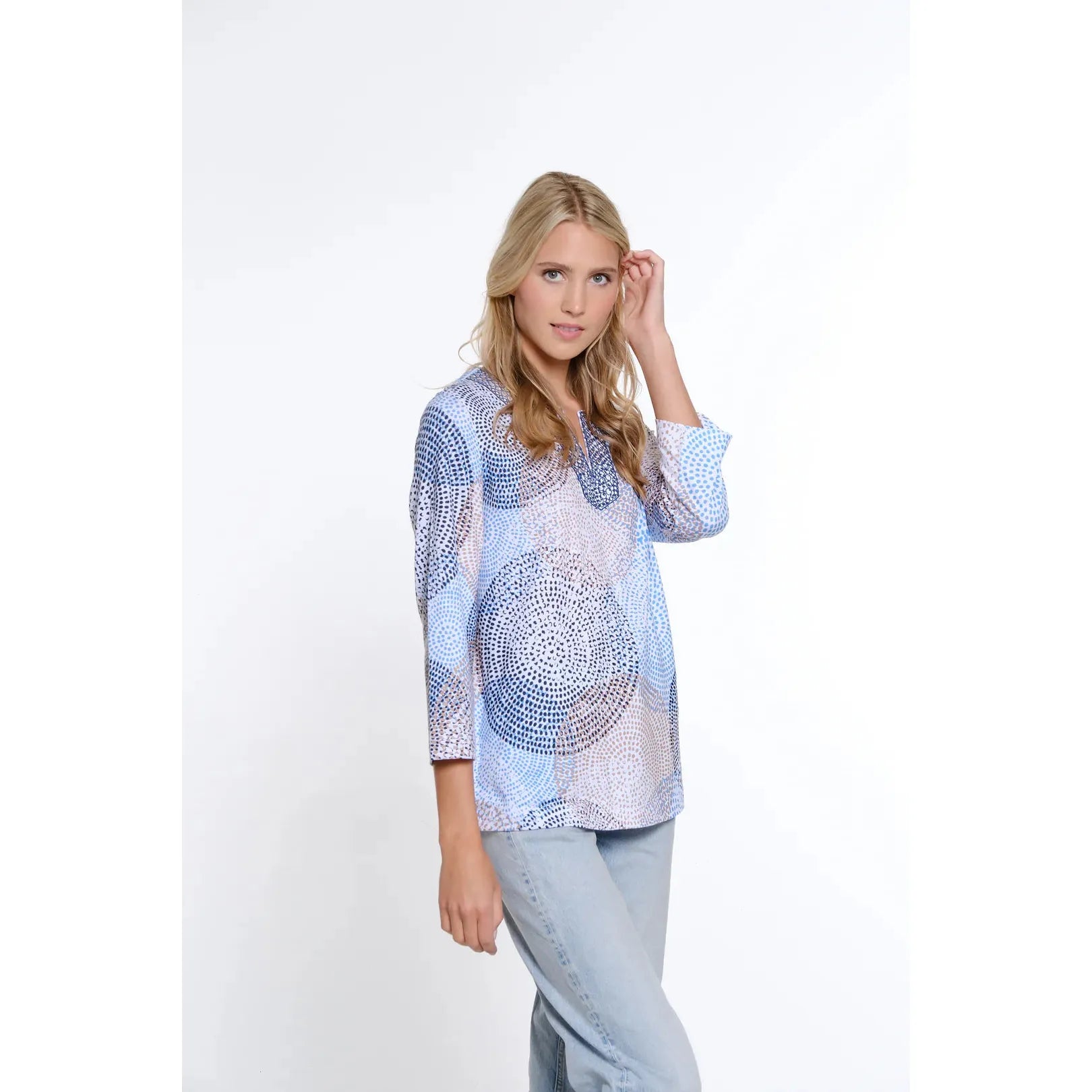 Add a touch of effortless charm to your wardrobe with this 3/4 sleeve slub knit top from Multiples. Featuring a beautifully embroidered band and a stylish notch neckline, this piece blends comfort with intricate detailing. The soft polyester-spandex blend provides a lightweight and stretchy fit, making it perfect for all-day wear. A subtle print enhances its versatile appeal, allowing you to dress it up or down with ease.